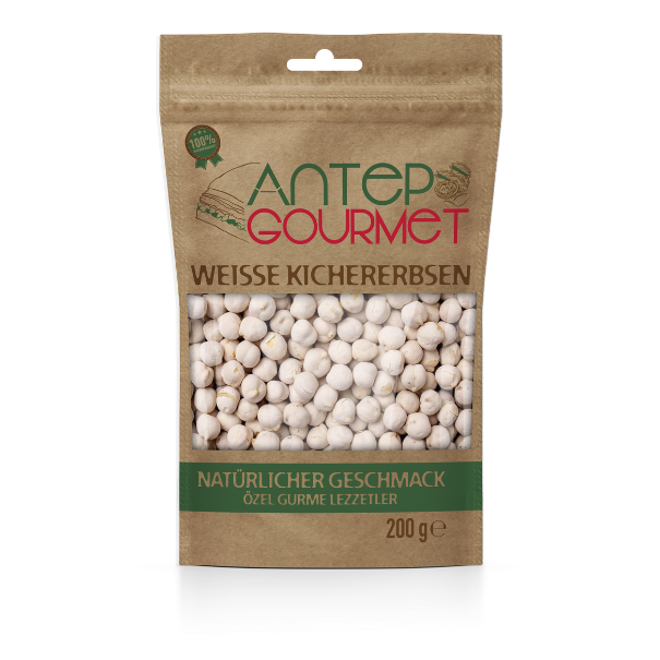Unsere weissen Kichererbsen sind naturbelassen und werden ohne Zusatz von Salz oder anderen Zusätzen angeboten. Sie überzeugen durch ihre knackige Konsistenz und ihren milden, leicht nussigen Geschmack.